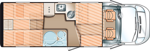 Of course the beds are equipped with high class matrasses, which guarantee a comfortable night. In the front area the motorhome is equipped with a folding down bed, which size is 140 Meters wide.